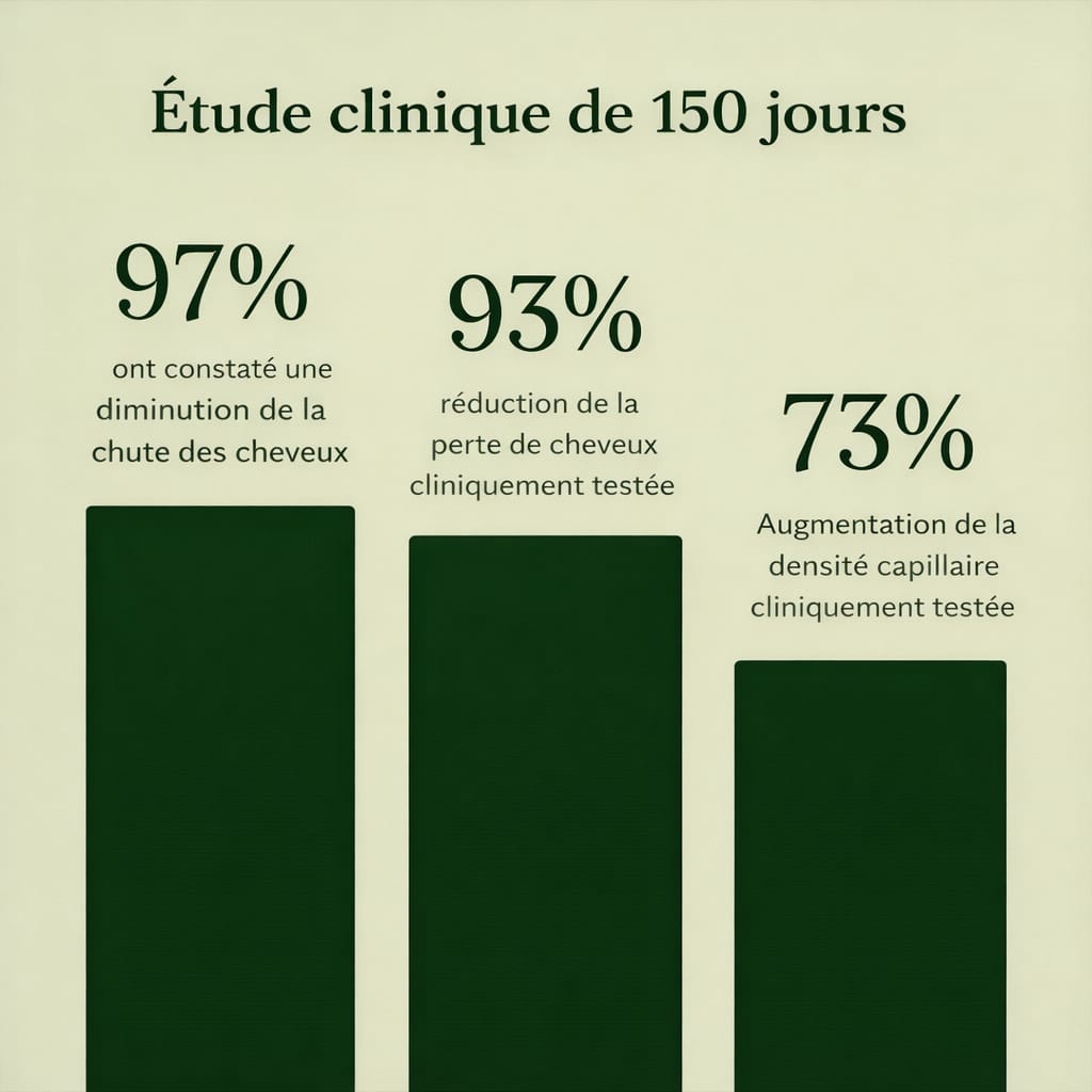 Des études montrent que le romarin offre des résultats comparables au Minoxidil — sans effets secondaires agressifs — tandis que l’huile de batana nourrit le cuir chevelu, fortifie les follicules et protège contre la casse.